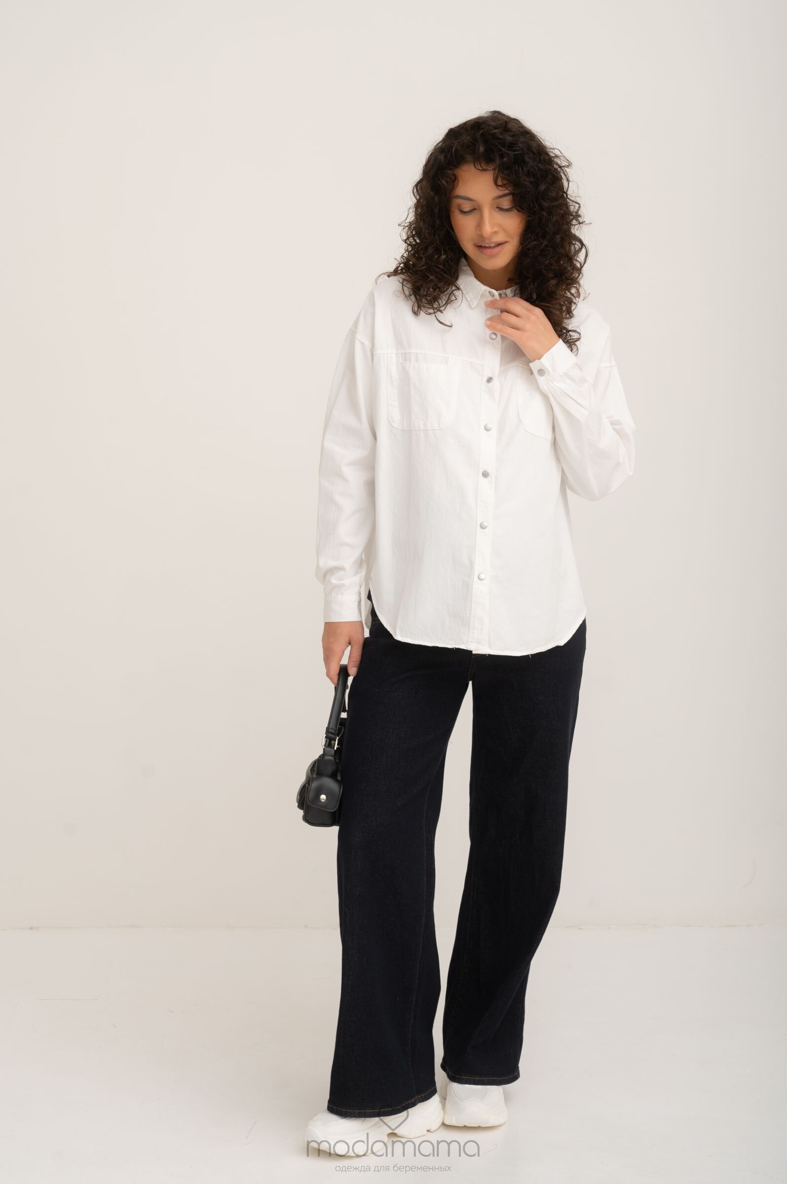 Джинсы свободного прямого кроя для беременных. Высокий трикотажный бандаж на передней части регулируется пуговкой по верху. Сзади по спинке резинка, обеспечивающая плотное прилегание к пояснице. Выполнены из мягкой, эластичной джинсы средней плотности. Размеры соответствуют 25-XS; 26-S; 27- M; 28-L; 29-XL.