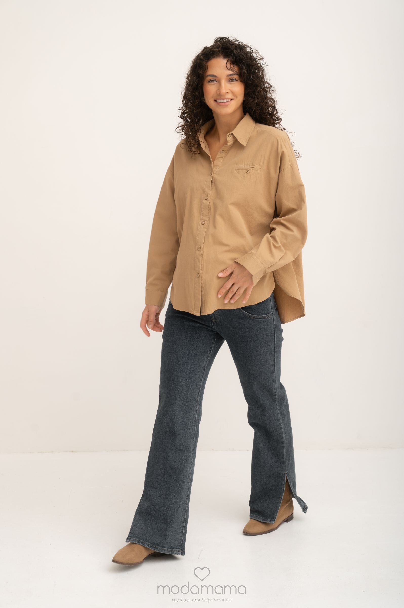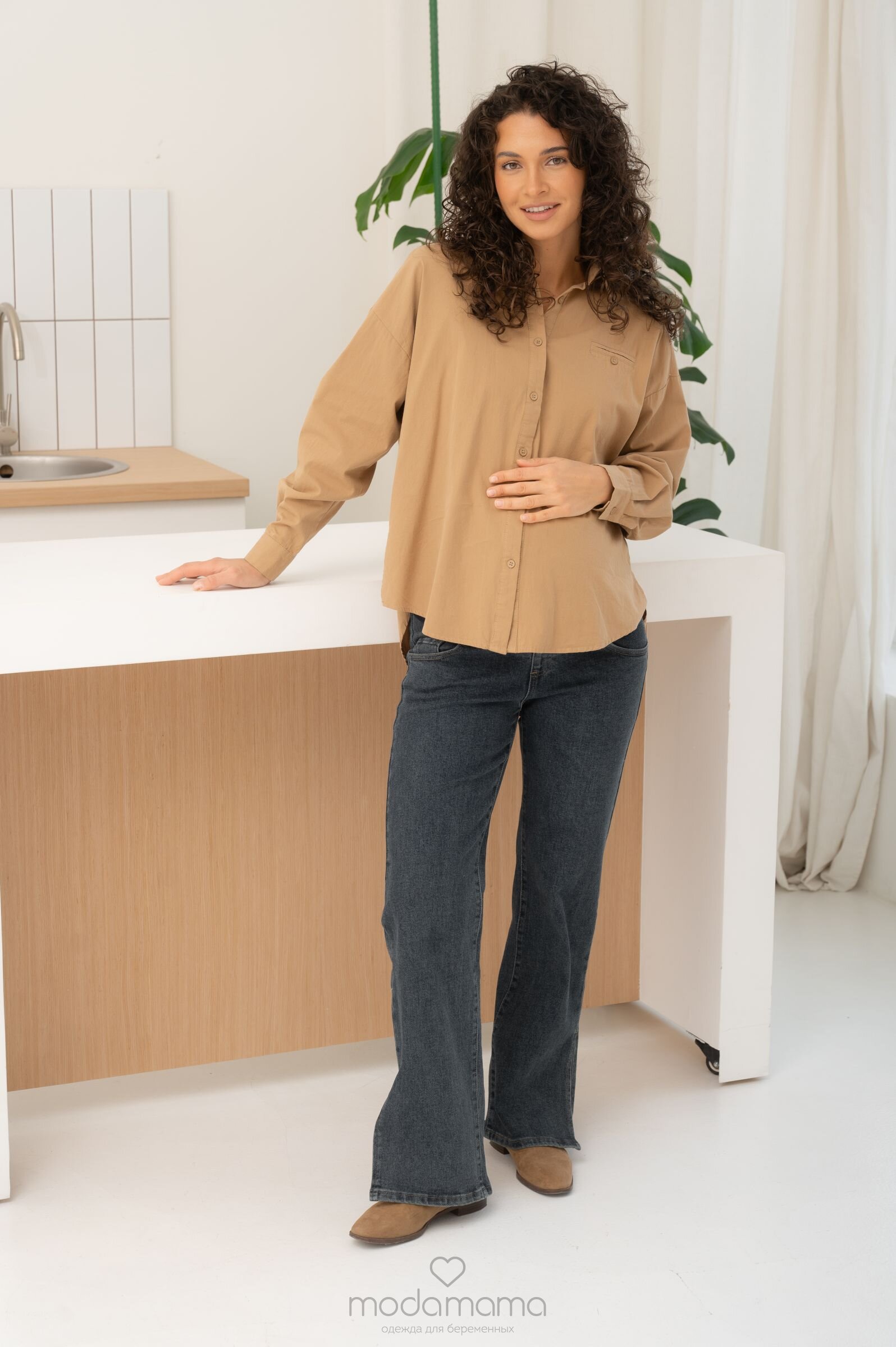 Джинсы для беременных свободного прямого кроя с разрезами по внешнему шву. Сзади по спинке резинка, обеспечивающая плотное прилегание к пояснице. Высокий трикотажный бандаж на передней части регулируется пуговкой по верху. Размеры соответствуют 25-XS; 26-S; 27- M; 28-L; 29-XL.
