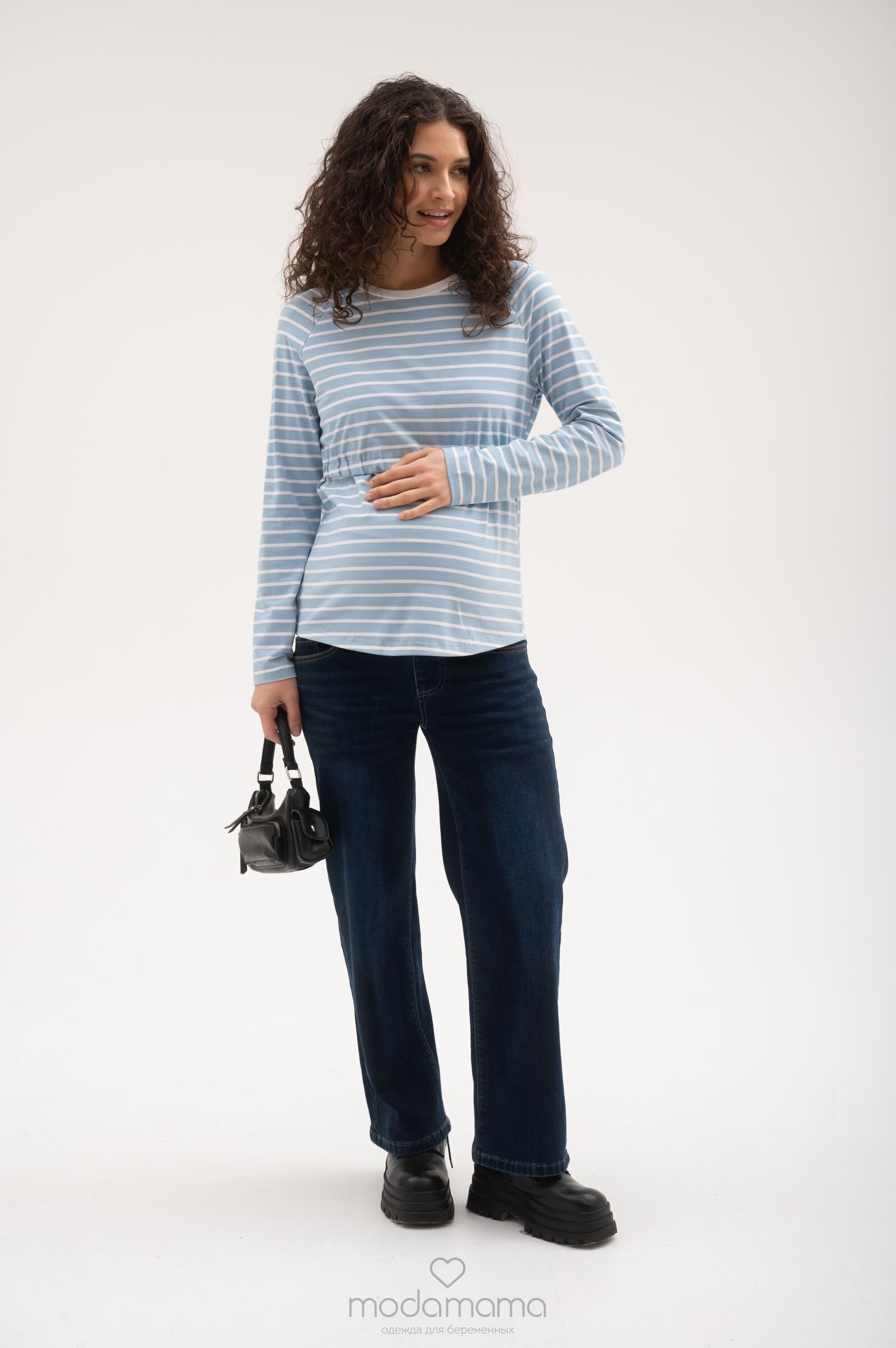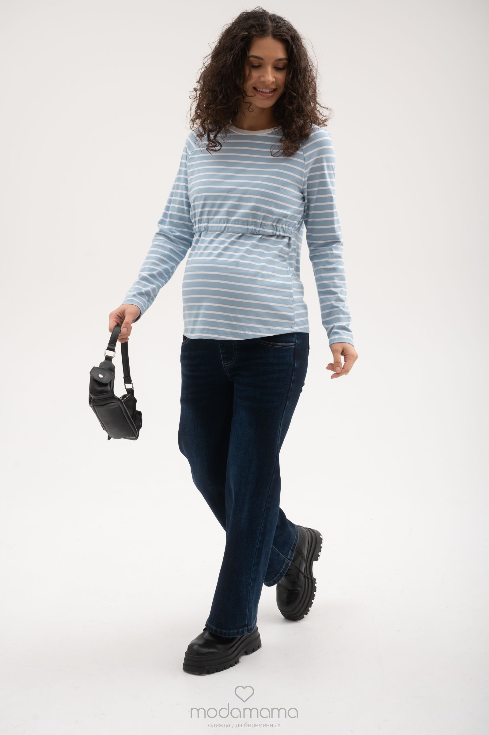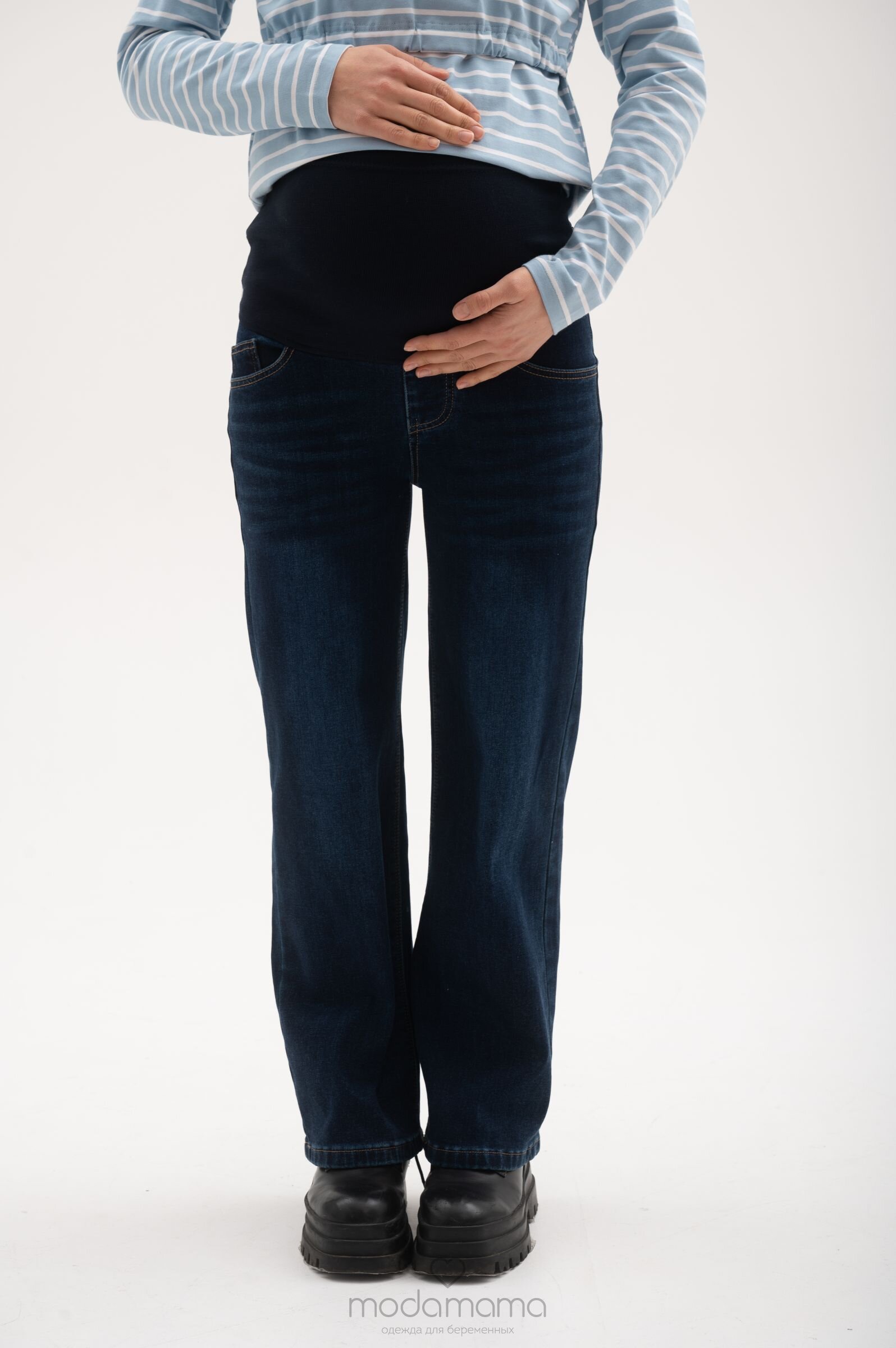 Джинсы свободного прямого кроя для беременных. Сзади по спинке резинка, обеспечивающая плотное прилегание к пояснице. Высокий трикотажный бандаж на передней части регулируется пуговкой по верху. Выполнены из плотной, мягкой, эластичной джинсы с небольшим утеплением (байка). Размеры соответствуют 25-XS; 26-S; 27- M; 28-L; 29-XL.