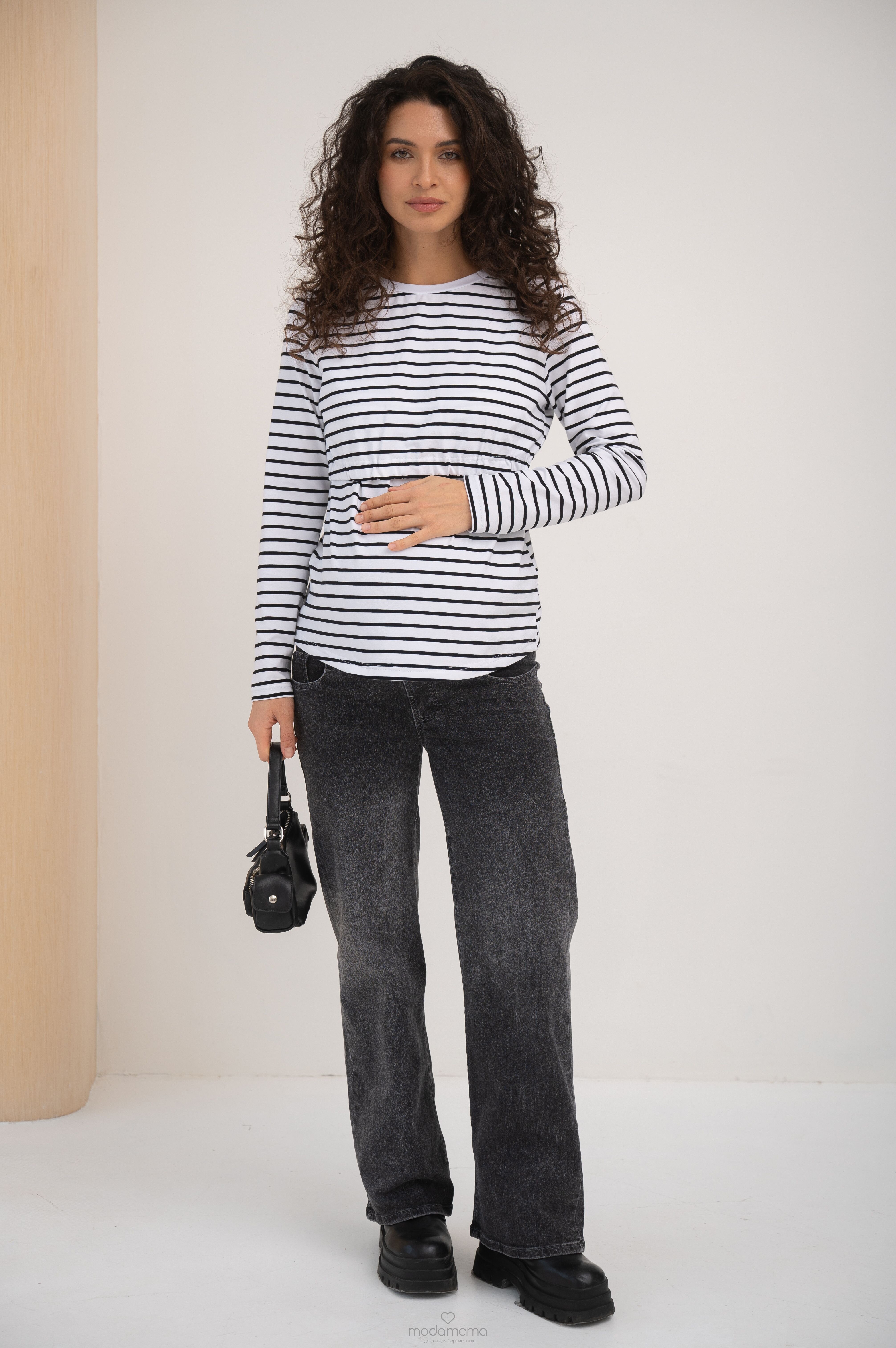 Джинсы для беременных, свободного прямого кроя. Сзади по спинке резинка, обеспечивающая плотное прилегание к пояснице. Высокий трикотажный бандаж на передней части регулируется пуговкой по верху. Выполнены из плотной, мягкой, эластичной джинсы. Размеры соответствуют 25-XS; 26-S; 27- M; 28-L; 29-XL.