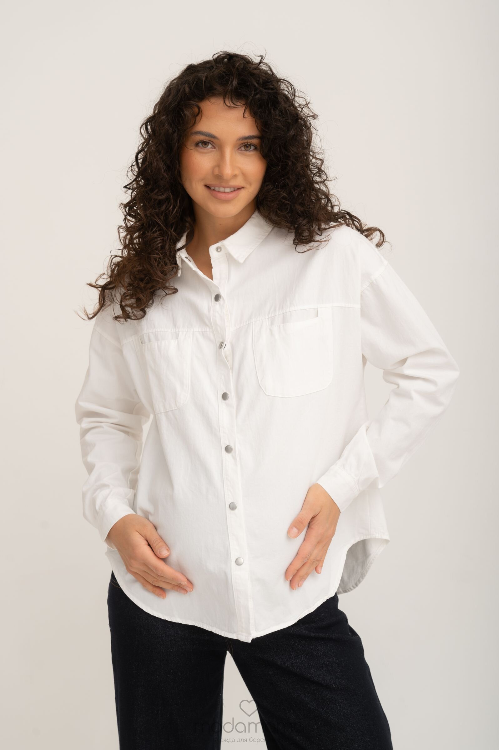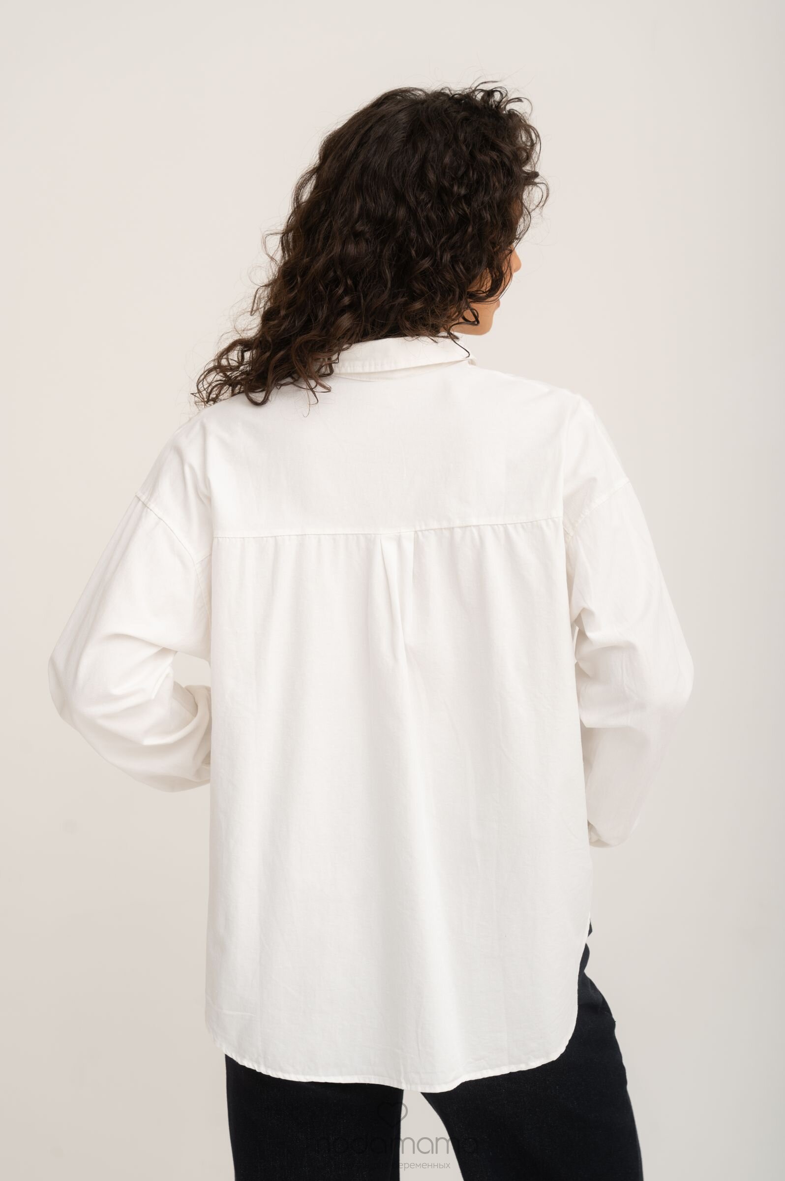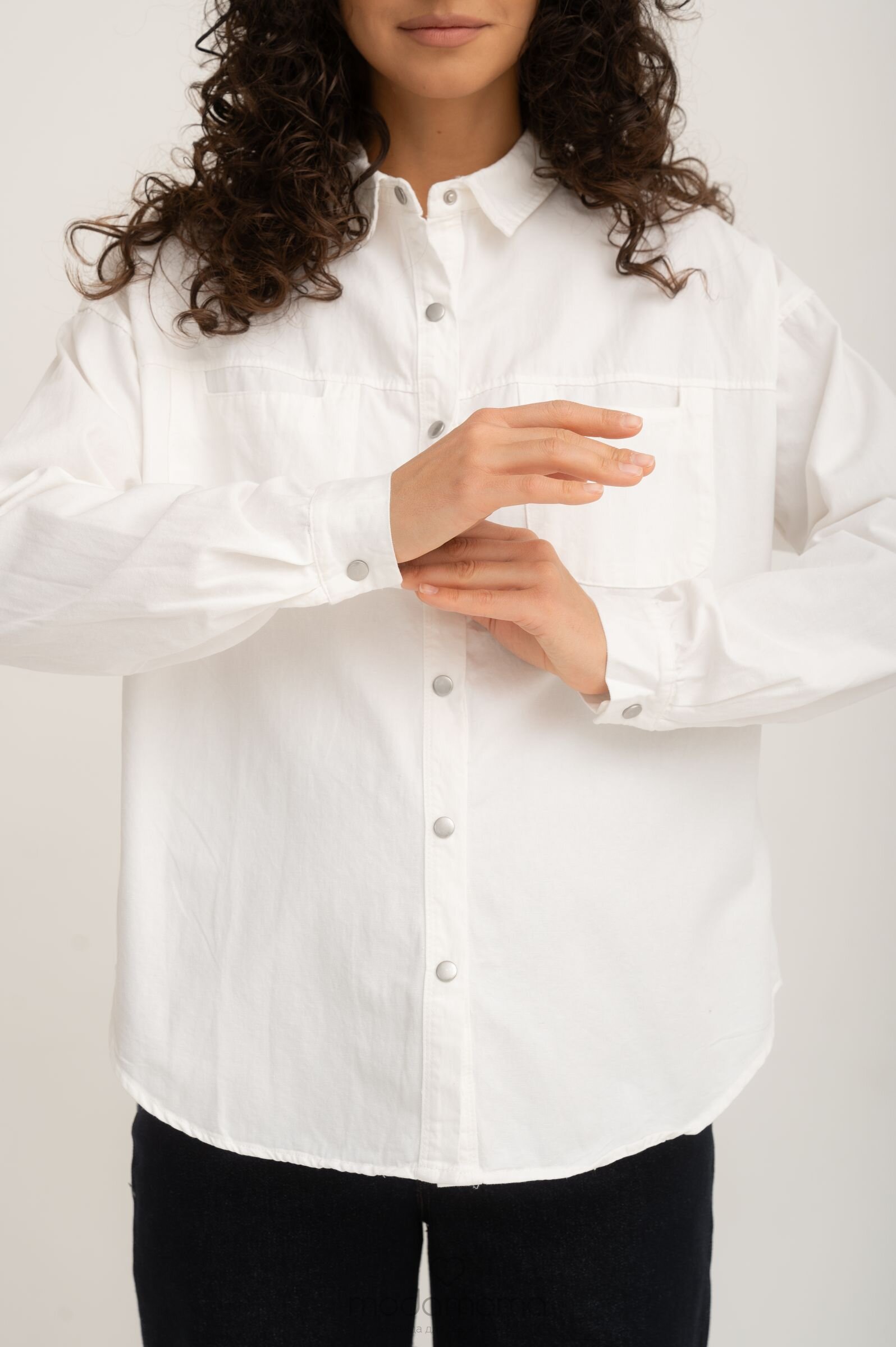 Рубашка на кнопках свободного универсального силуэта в стиле оверсайз со спущенным плечом и акцентными карманами. Выполнена из мягкго хлопка средней плотности с джинсовым переплетением.