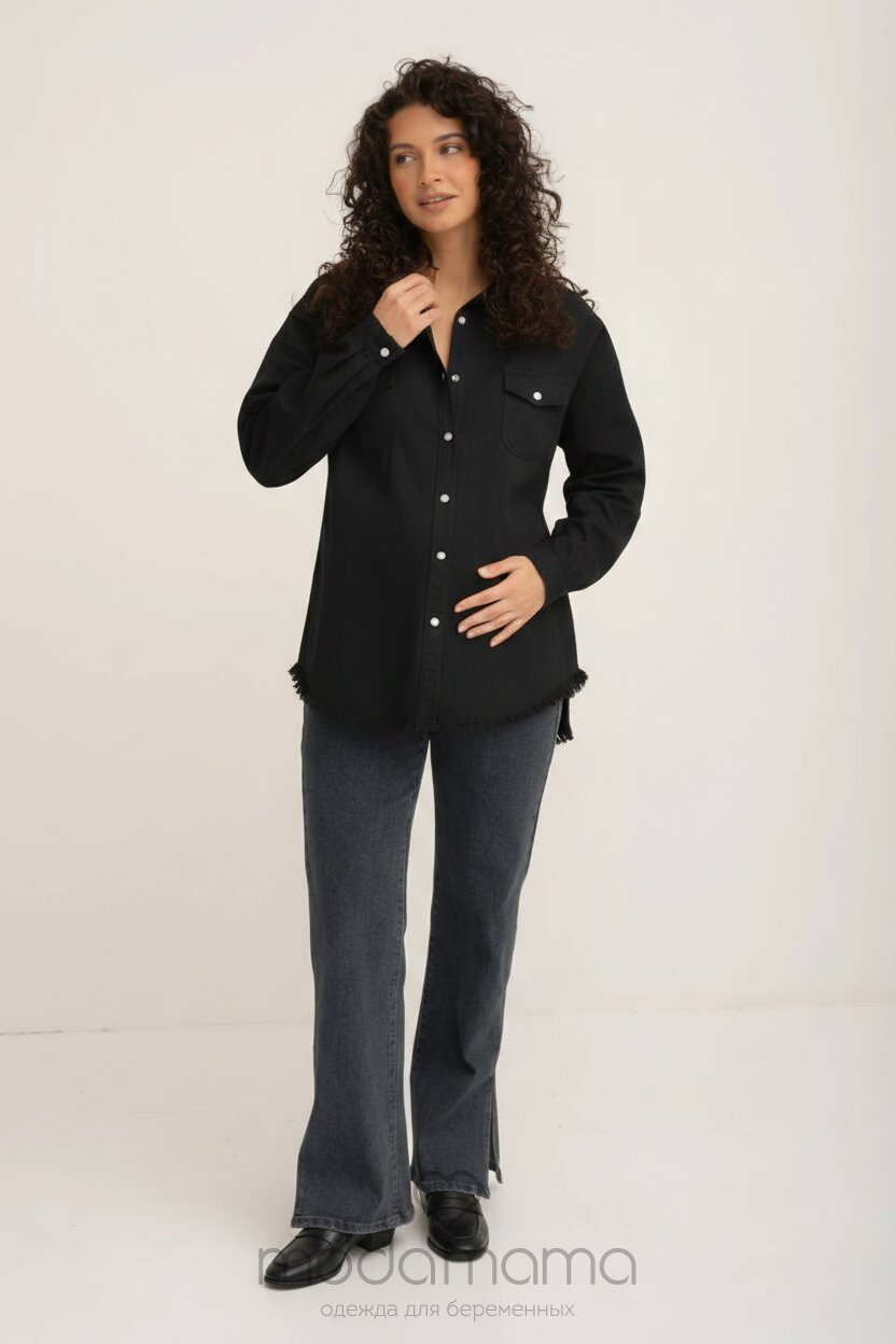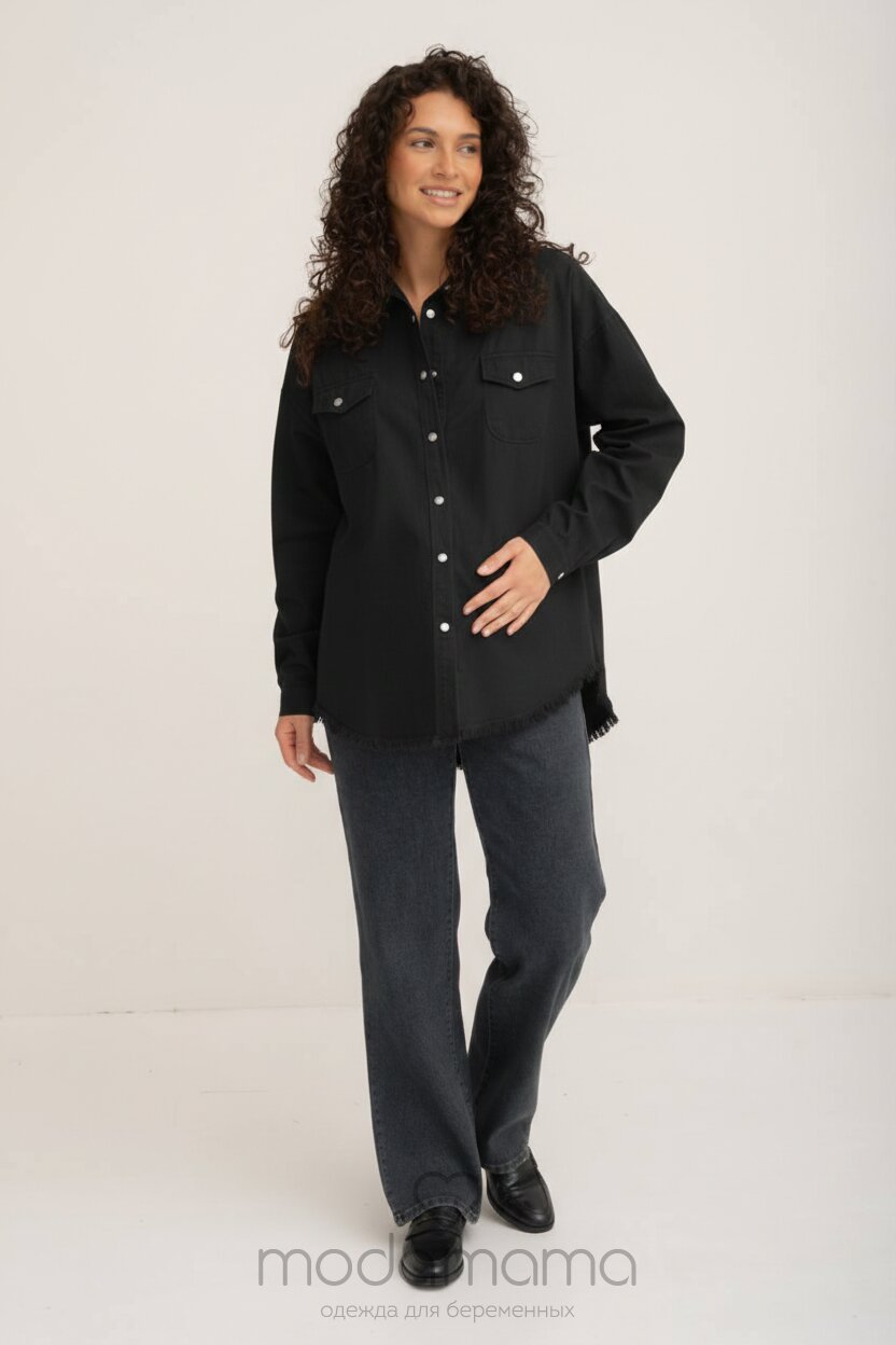 Рубашка на кнопках свободного универсального силуэта в стиле оверсайз со спущенным плечом и необработанным нижним краем. Выполнена из мягкой тянущейся джинсы средней плотности.