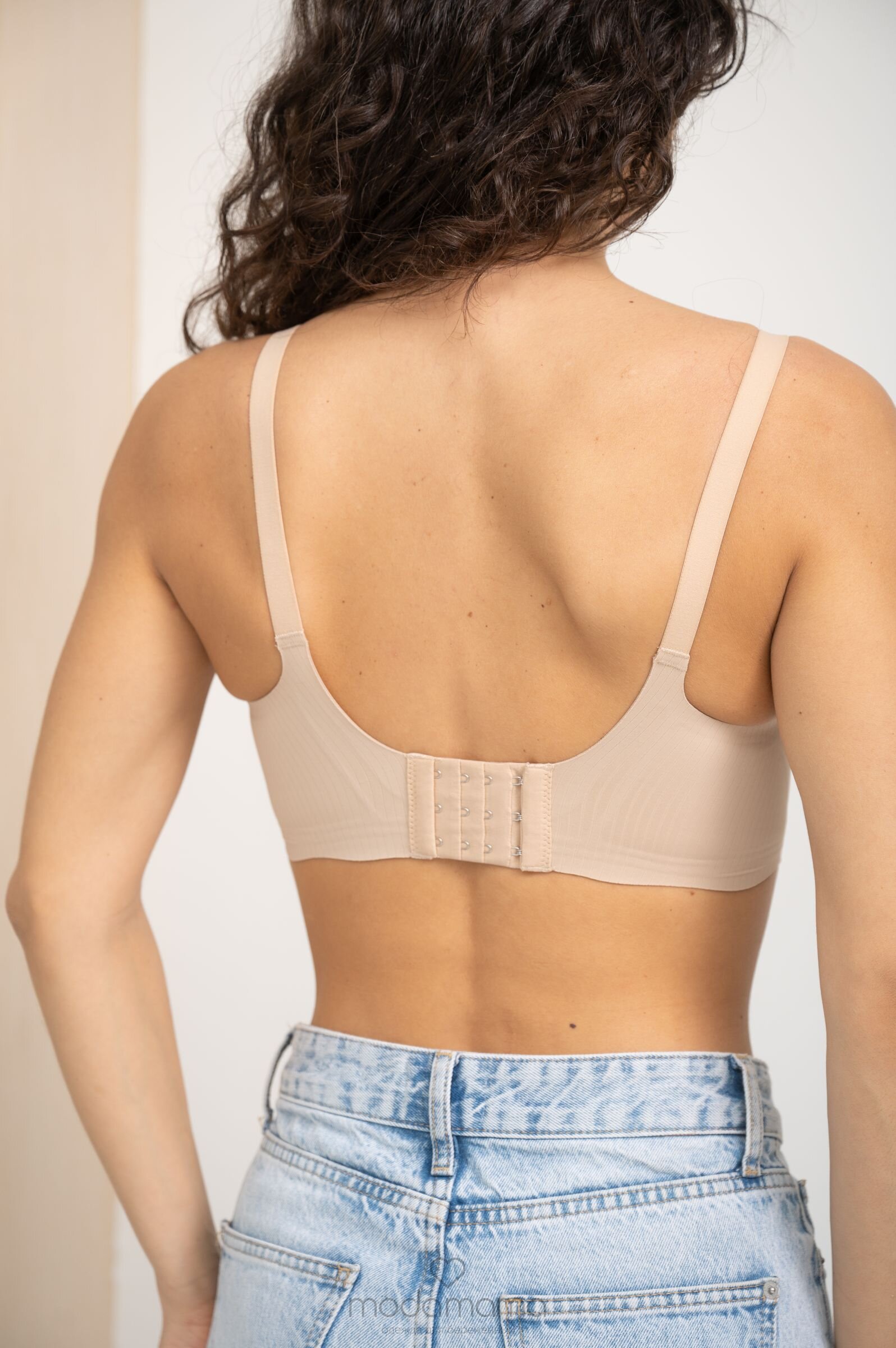 Бесшовный бюстгальтер-топ для беременных и кормящих мам без косточек. Выполнен из мягкой дышащей микрофибры. Чашки отстёгиваются. Размеры соответствуют: M(42-44), L(44-46), XL(46-48), XXL(48-50), XXXL(50-52)