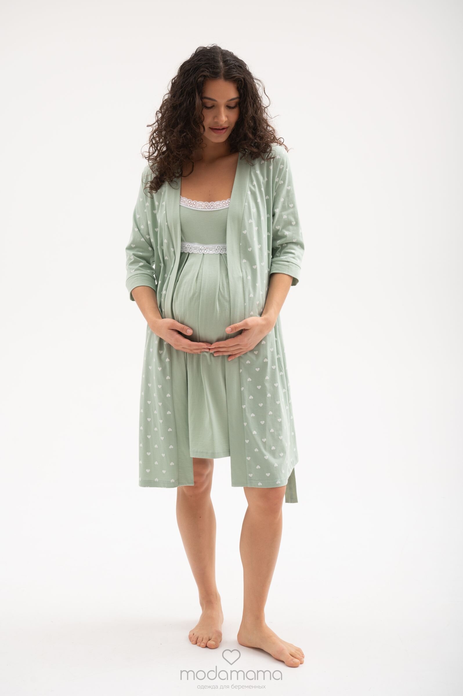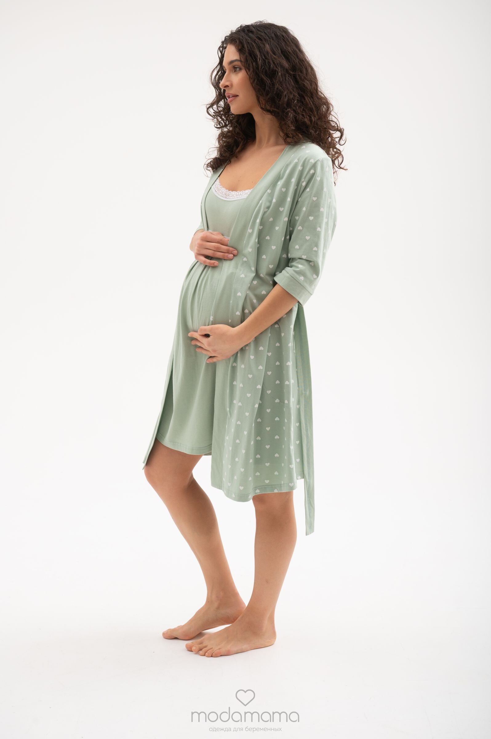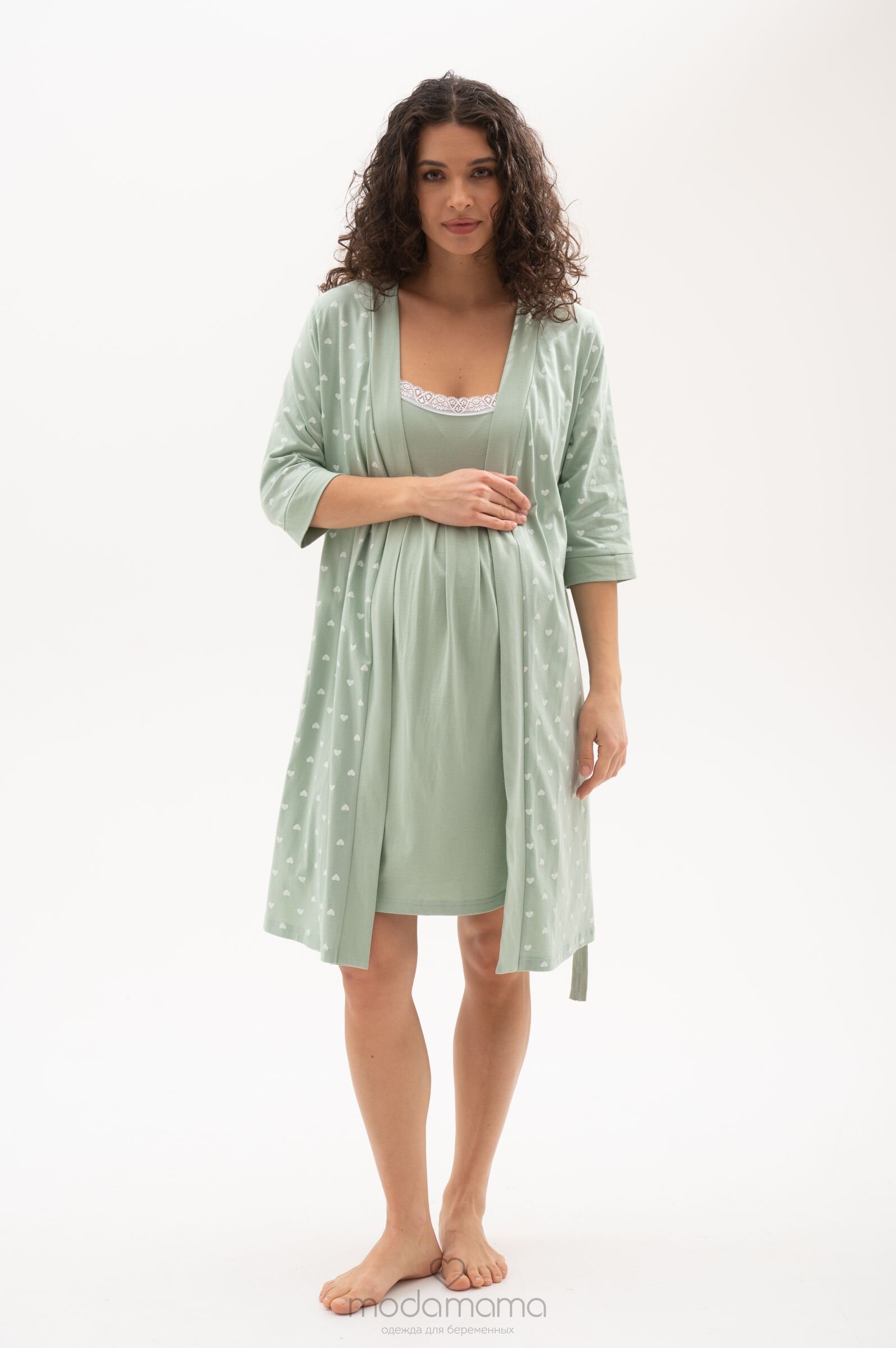 Удобный комплект для роддома, состоящий из халата и ночной сорочки. Халат с пояском на кулиске, сорочка с нежным принтом имеет специальные застежки для кормления. Стильная широкая окантовка халата по краям и на рукавах 3/4 великолепно солирует на фоне основной расцветки. Пояс-завязка эффектно подчеркивает животик и создает изумительно женственный силуэт, а мягко струящийся материал из чистого хлопка создает непревзойденный комфорт. Узкие бретели ночной сорочки подчеркивают изящность модели, для оптимальной посадки их можно регулировать. Благодаря удобной застежке-клипсе лиф легко отстегивается одним движением руки