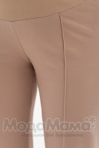 Брюки для беременных прямого кроя с отстроченными вертикальными стрелками. Высокий круговой трикотажный бандаж регулируется пуговкой по верху. Выполнены из мягкого, тянущегося трикотажа (футер-двухнитка).