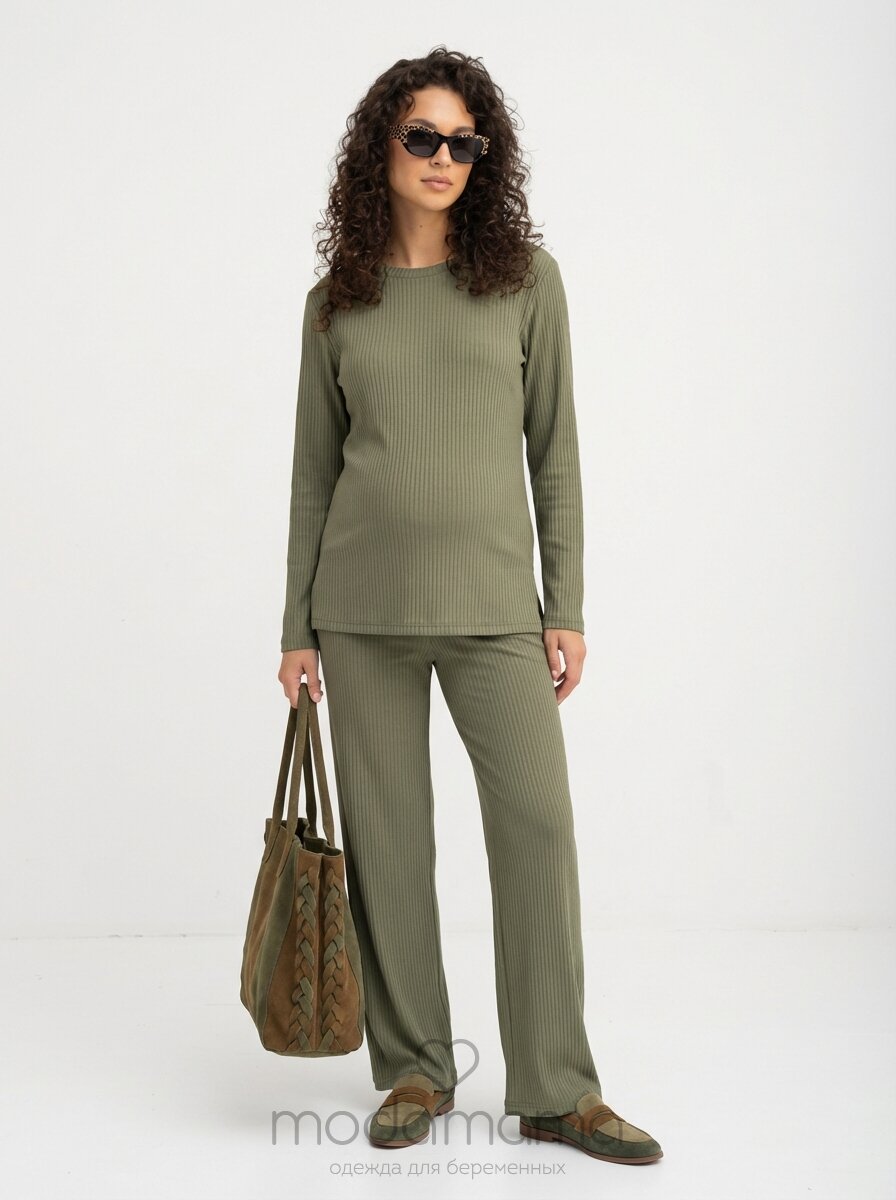 Брючный костюм для беременных из мягкого, эластичного трикотажа-"лапша". Прямой силуэт джемпера с разрезами по бокам позволяет носить его как во время, так и после беременности. Широкие брюки без бокового шва с высоким круговым бандажем из основной ткани регулируются пуговкой по верху. Каждый элемент костюма можно носить по отдельности и сочетать с другими вещами в гардеробе.