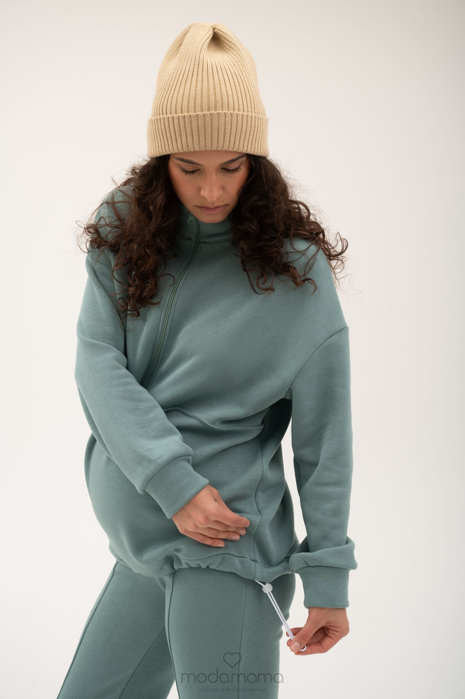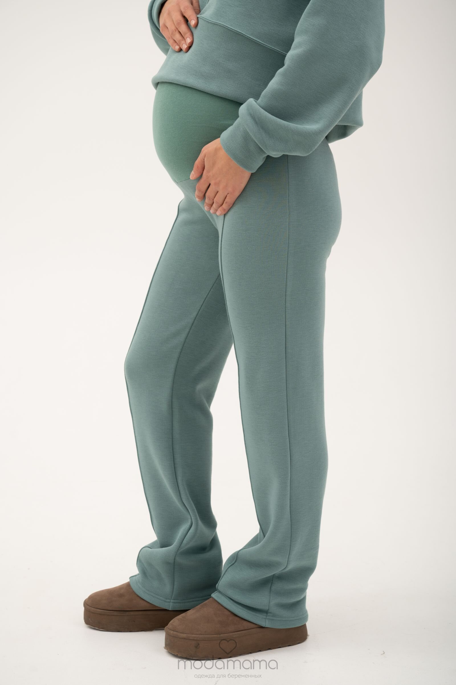 Утепленный спортивный костюм для беременных. Джемпер для беременных и кормящих мам с акцентной горизонтальной строчкой, резинкой-утяжкой по нижней части и воротником-стойкой на молнии, Брюки прямого кроя с отстроченными вертикальными стрелками. Высокий круговой трикотажный бандаж регулируется пуговкой по верху. Выполнен из мягкого, утепленного, тянущегося трикотажа (футер 3-нитка с флисом-"барашек").